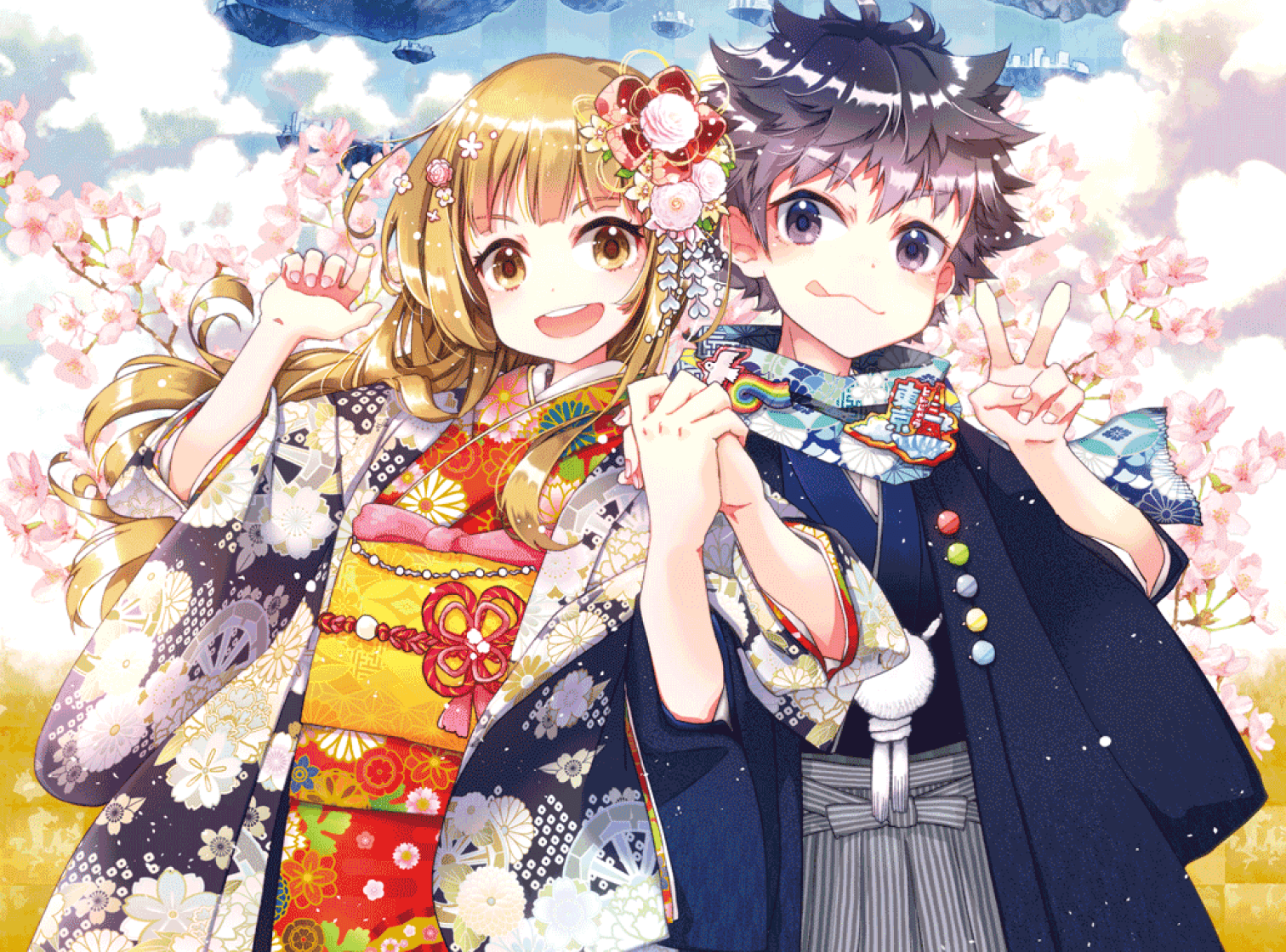 タイトル文字やキャラクターの装身具に、特殊色ゴールドをさりげなく配置。