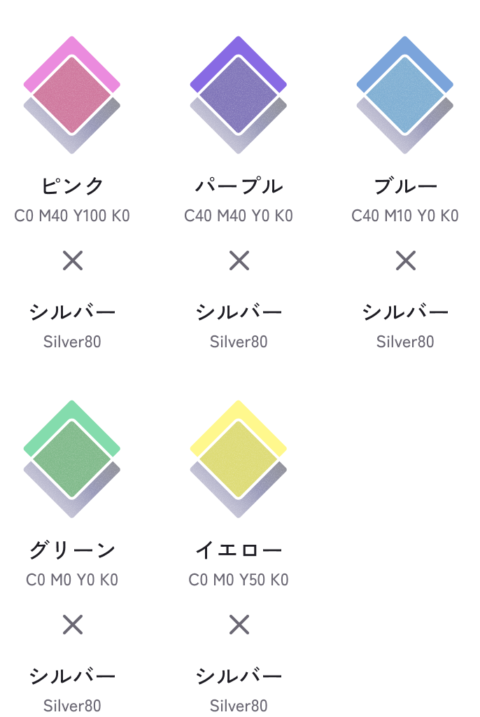 ブルーに重ねてシルバーブルー、紫に重ねてシルバーバイオレットなど、